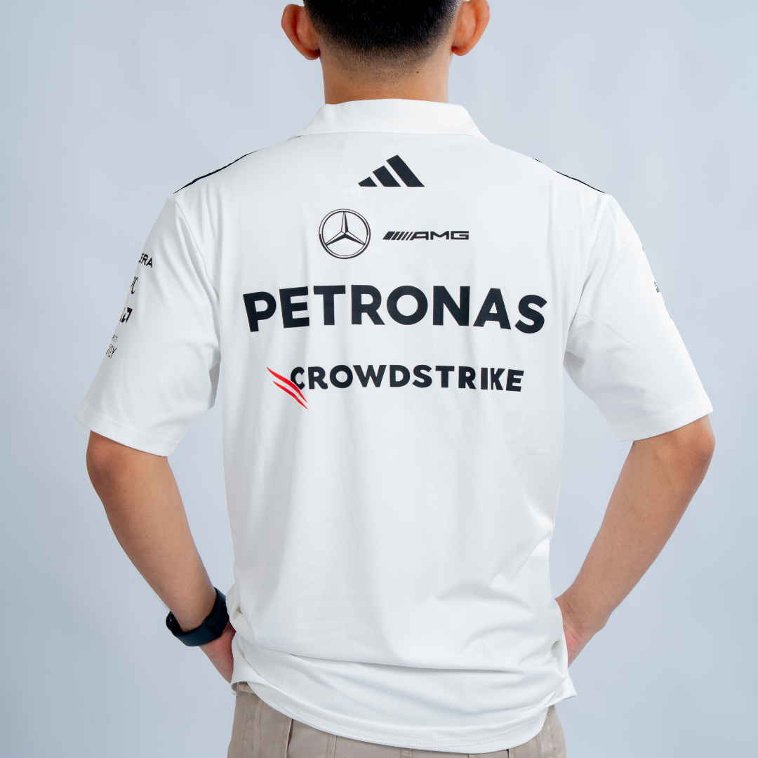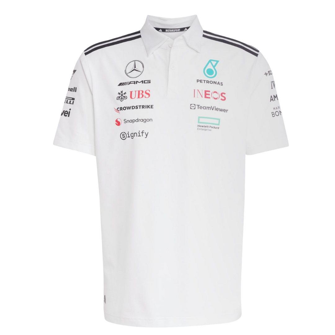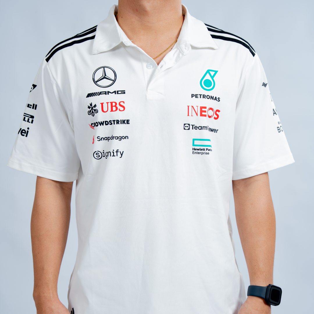 This Mercedes AMG Petronas polo features the team's iconic white color and is made by adidas, known for their high-performance apparel. Stay cool and comfortable while showing your support for the F1 team with this sleek and stylish polo.